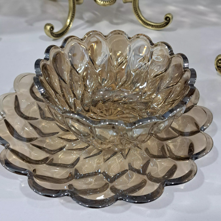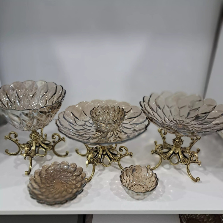 سرویس پذیرایی شامپاینی ۱۵ پارچه ظرف شیرینی خوری میوه خوری اجیل خوری پیاله پیش دستی با پایه المنیوم