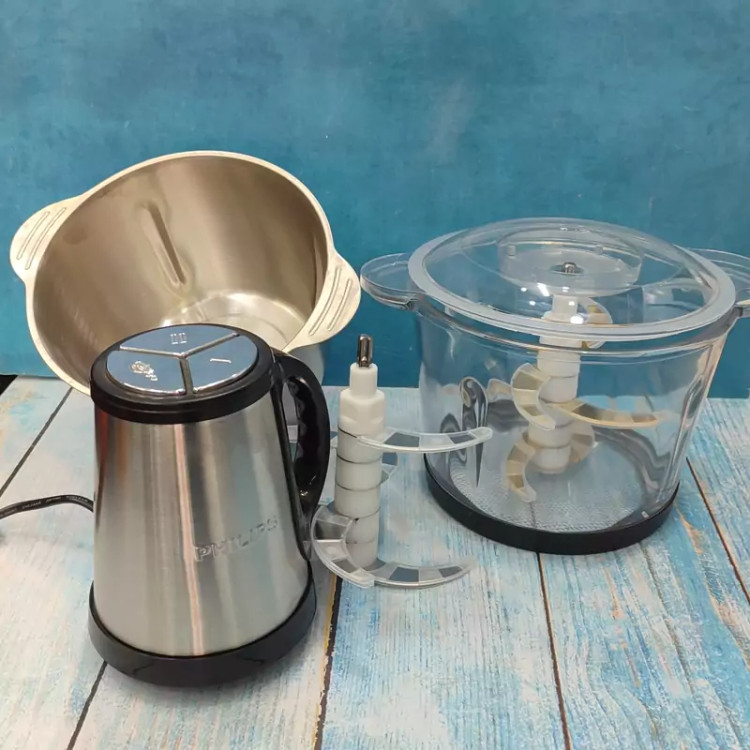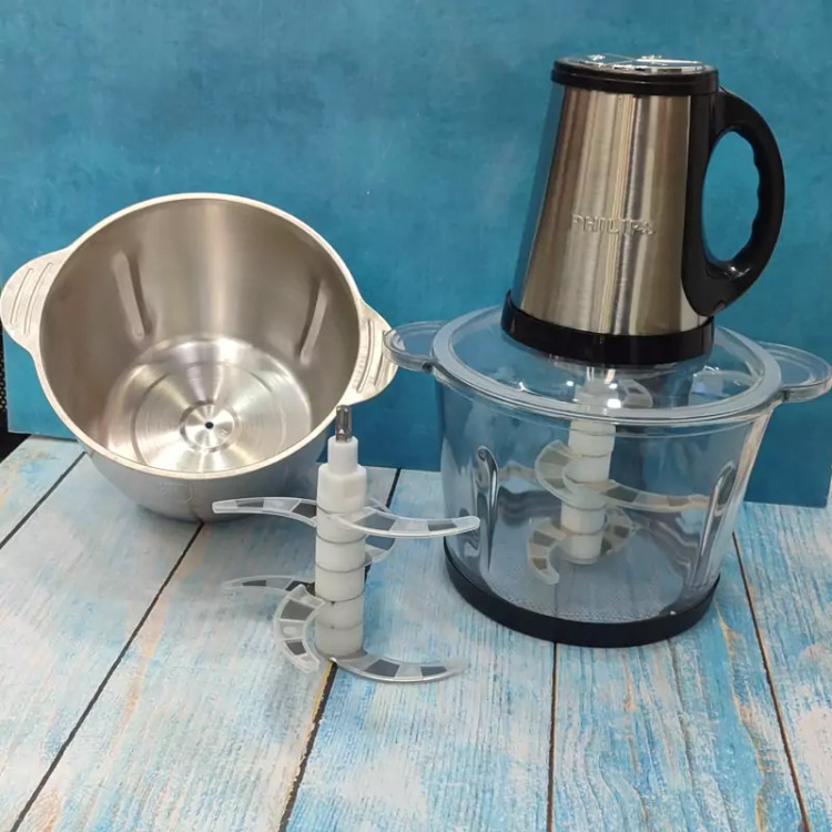 ظرفیت : 3/8 لیتر توان :3000 وات جنس ظرف : شیشه ای جنس درب : پلاستیکی پایه ضد لغزش : √ تعداد تیغه : 4 عدد جنس تیغه : استیل ضد زنگ یکی از مهمترین ویژگی های خردکن 4 تیغه فیلیپس جنس تیغه های استیل ضد زنگ آن است. بیشتر خردکن های موجود در بازار 4 تیغه هستند. ظرف خردکن دارای گنجایش 3/8 لیتر است. این دستگاه فوق العاده زیبا و شیک ساخته شده است. تیغه ها به راحتی از این ظرف جدا میشوند و قابل شستشو در ماشین ظرفشویی است. صدای خردکن 4 تیغه ی فلیپس بسیار کم است صدای آن دیگران را اذیت نمیکند. خردکن برقی فلیپس بسیار از استحکام بالای بهره مند است. این دستگاه در رنگ استیل موجود است