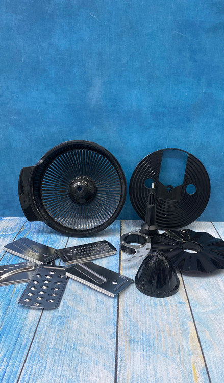 در بالای بدنهی اصلی، ظرف خردکن متصل میشود تا با اتصال تیغهها و دیسکهای رندهی مختلف، عملکردهای متفاوتی مثل ریزکردن، خردکردن، رنده در اشکال مختلف و حتی قابلیت خمیرزن در دستگاه مشاهده شود.