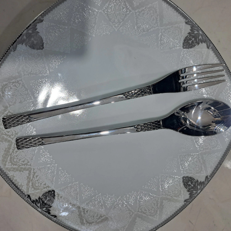 سرویس قاشق چنگال ام جی اس ۱۲ نفره .. نگیر ۷۲ پارچه طرح شیک ۱۲ عدد قاشق غذاخوری ۱۲ عدد چنگال غذاخوری ۱۲ عدد کارد میوه خوری ۱۲ عدد چنگاه میوه خوری ۶ عدد قاشق شربت خوری ۶ عدد قاشق مربا خوری ۶ عدد قاشق چای خوری ۲ عدد قاشق بزرگ ۲ عدد کفگیر ۲ عدد ملاقه