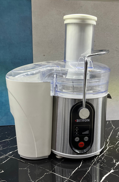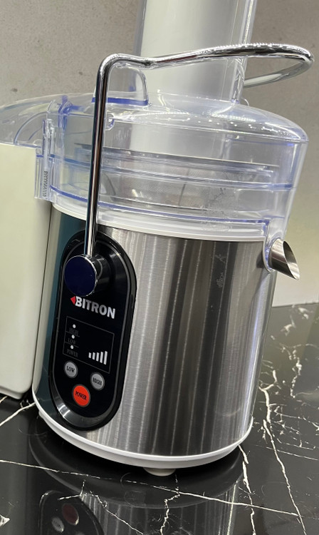 یک دستگاه زیبا و کارآمد از شرکت بایترون است که با کیفیت بالا و کارایی فوقالعادهای تولید شده است. این آبمیوهگیری دارای موتور ۵ سرعته با توان ۸۰۰ وات میباشد که توانایی آبگیری انواع میوهها از جمله میوههای سخت مانند سیب، هویج، و هلو را دارد. برای آبگیری میوههای سخت میتوان از سرعتهای بالا و برای میوههای نرم از سرعتهای پایین استفاده کرد. بدنه این دستگاه از استیل مقاوم ساخته شده است.