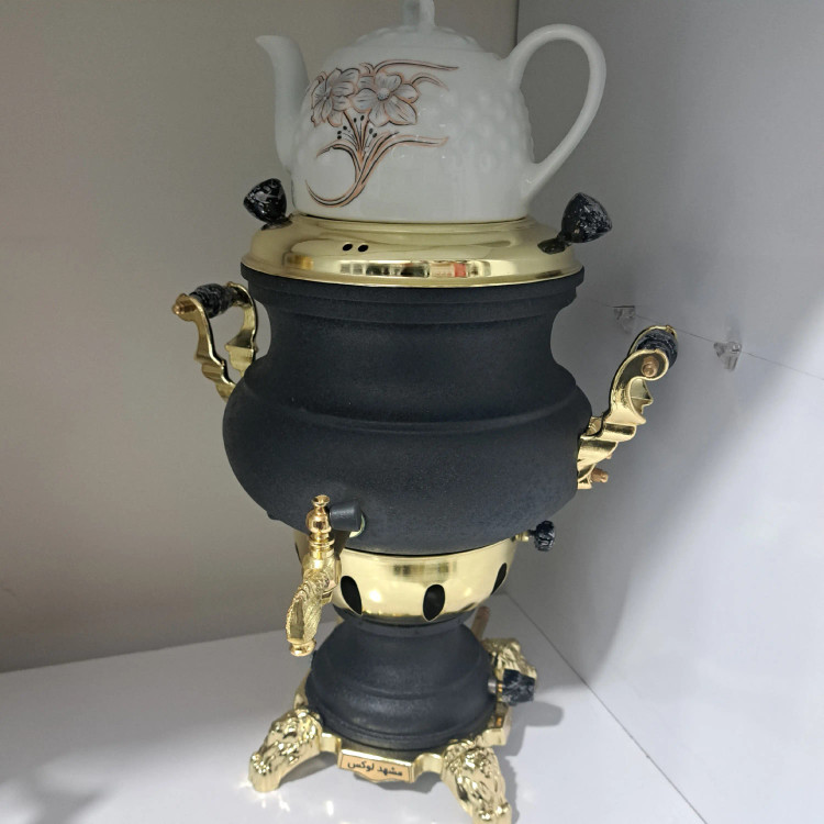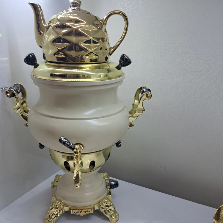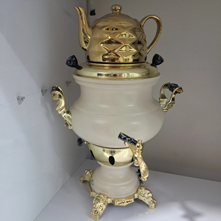 سماور گازی رنگی بدون تنوره ۶ لیتری رنگ طلا مشکی و کرم طلا و بادمجونی