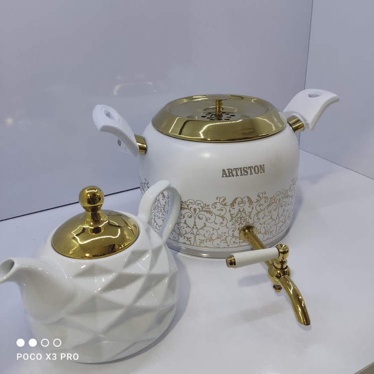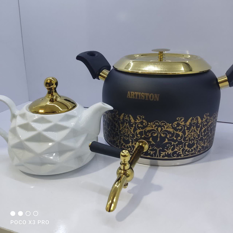 همانطور که بسیاری از شماها می دانید ، کتری قوری ،سرویس پاسماوری و سرویس های آشپزخانه درواقع جزو دکوراسیون اصلی آن محسوب می شوند. اگر قصد خرید جهزیه و یا مدرن کردن آشپزخانه ی خود را دارید ما ست کتری قوری ،پاسماوری و سرویس آشپزخانه گل بنجامین برند آرتیستون را به شما پیشنهاد میکنیم تا هم زیبایی و هم کیفیت را همزمان تجربه کنید . چرا که هم ظاهر زیبایی داد و هم کیفیت آن نسبت به سایر برند های دیگر در بازار بهتر می باشد و تغییر رنگ ندارند.
