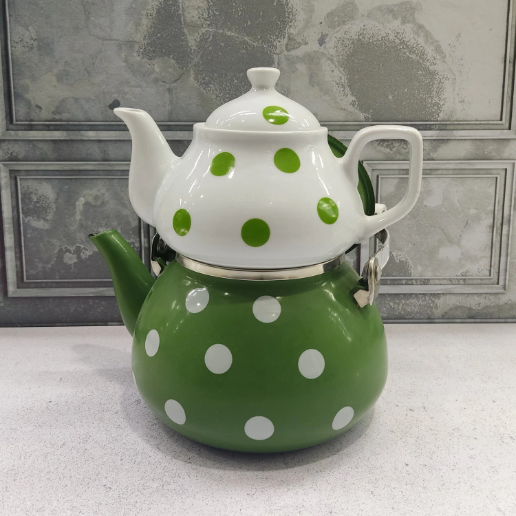 جنس کتری : لعاب جنس قوری : چینی حجم کتری : 2/5 لیتر حجم قوری : تقریبا 1 لیتر کتری و قوری هر دو دارای درب میباشند